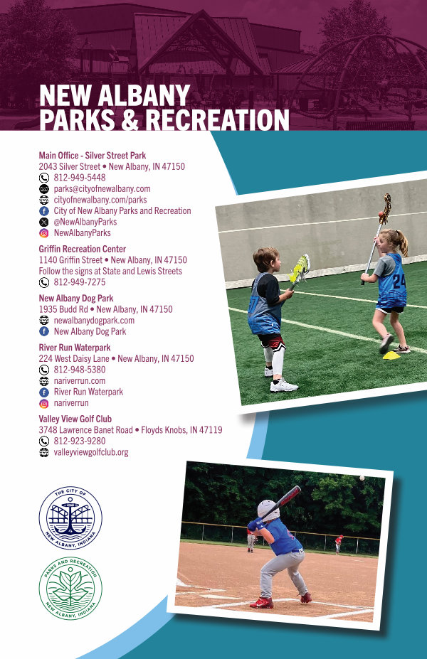 2043 Silver Street • New Albany, IN 47150 812-949-5448 parks @ cityofnewalbany. com cityofnewalbany. com / parks City of New Albany Parks and Recreation @ NewAlbanyParks NewAlbanyParks